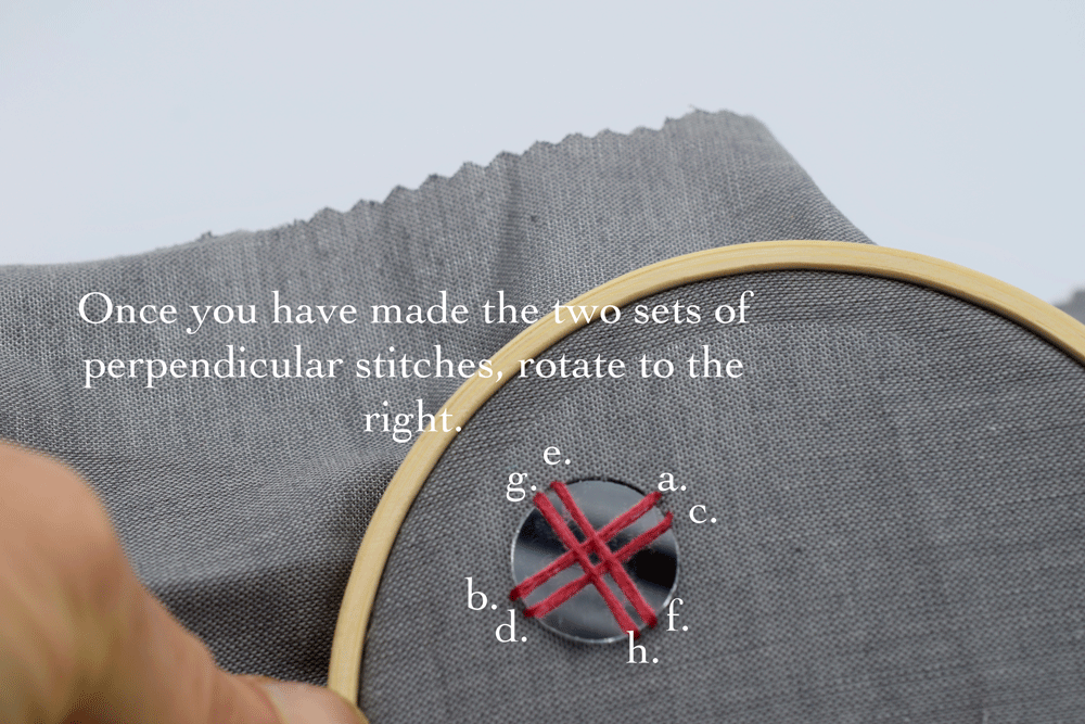 Have you ever seen those tiny circular embroidered mirrors? Once something is brought to my attention I start seeing it everywhere. I started researching it a bit and it’s called SHISHA STITCHING. Shisha stitching is simply defined as embroidering small mirrors or pieces of mirrors to a fabric surface using decorative stitching. It originated in India. I read that the significance of the mirror is to ward off evil spirits. The little circular mirror shape is just the right size to reflect back one eye (the evil eye?) so it makes sense. I like the idea of it being a protector of good luck/fortune plus who doesn’t love a little extra sparkle? There are so many different variations but I’m just going to show you two very basic options and then if you really get into it, there are so MANY more to experiment with.