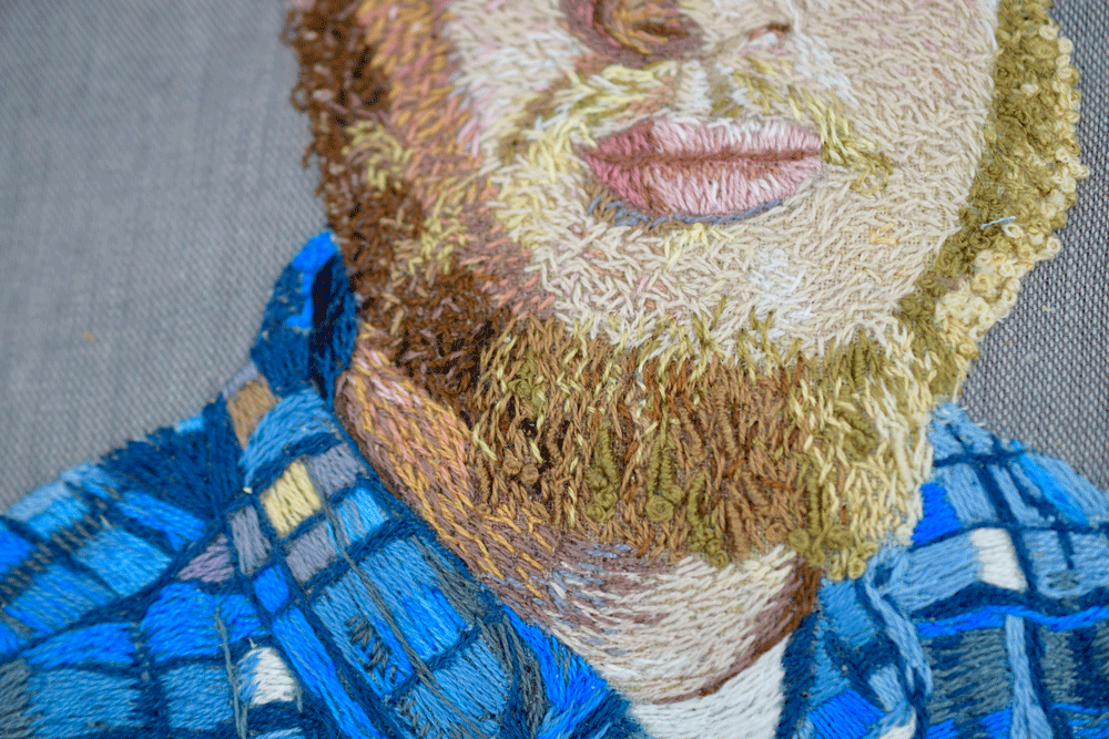 I love working on hair because it looks so real. My favorite part in any painting or embroidery is adding highlights. It really brings the work to life.