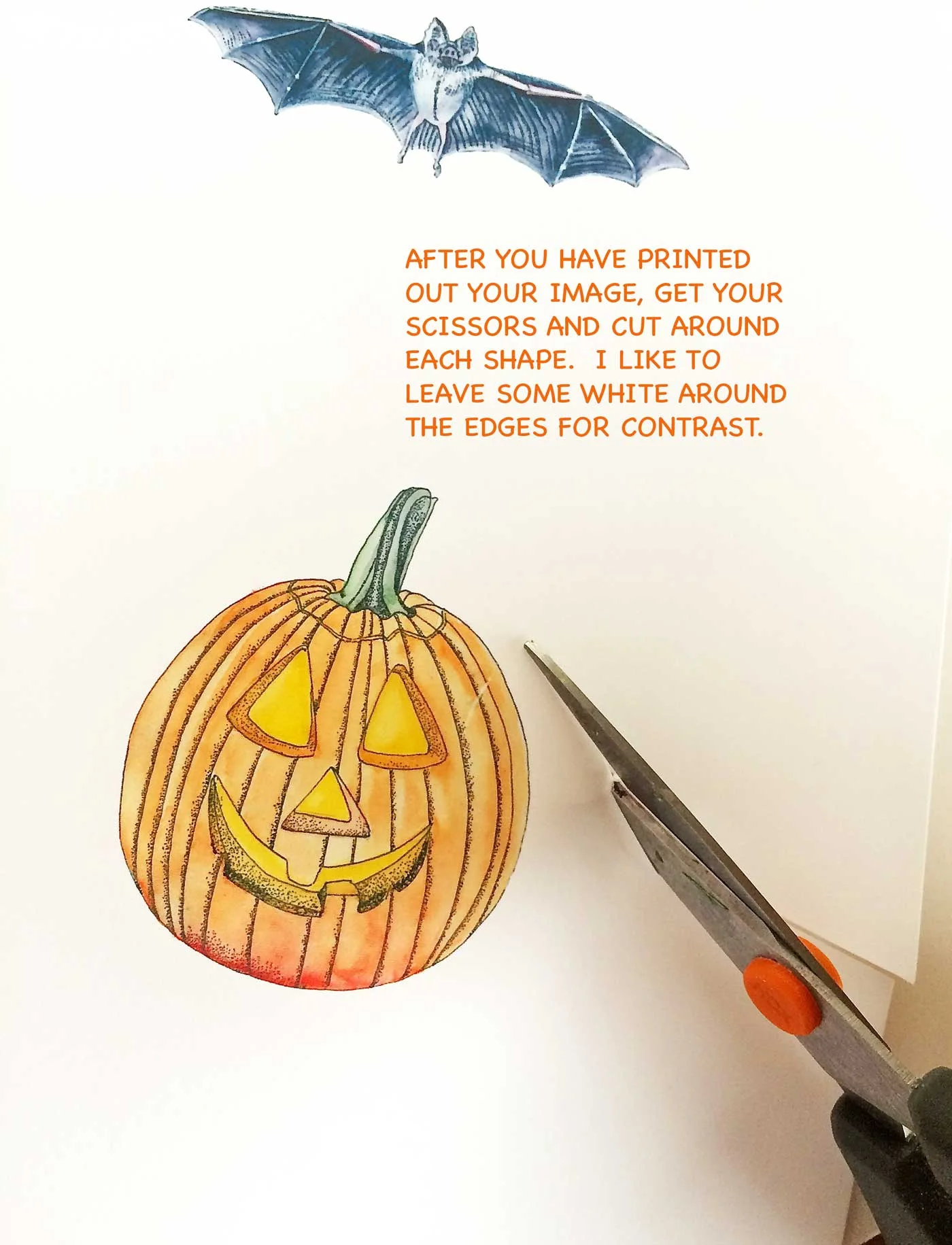 Use a nice, sharp pair of scissors to carefully cut around the image. I like to leave a little white space around the edge for contrast.