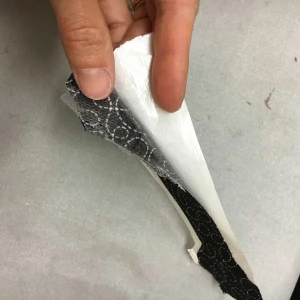 Peel off the paper backing and you can see that the glue has now adhered to the tie.